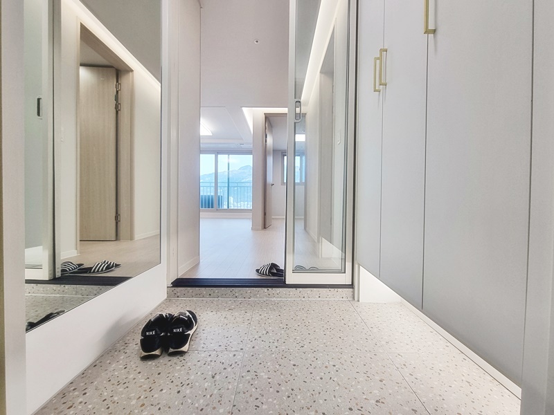 충분한 크기의 신발장과 전신거울이 커다랗게 있어서 나가실때 전체적인 옷매무새 정리하시기 좋습니다.