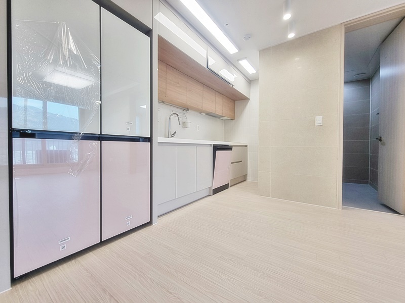 식세기, 냉장고등 가전들이 신형이고 첫 입주이시기때문에 새것을 사용하실수 있습니다. 색깔도 이쁘네요. 주방에 상하부장이 모두 있어 수납에도 용이 합니다.