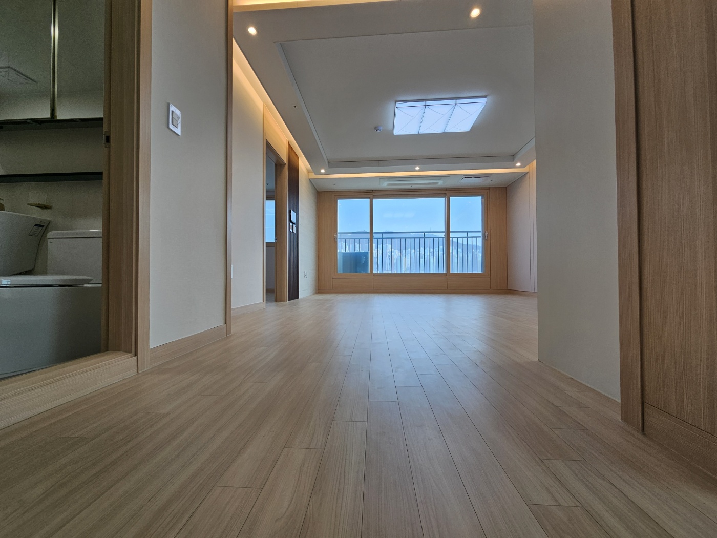 입구쪽에서 바라본 거실 입구 입니다. 달리기 트랙으로 써도 될만큼 긴 공간과 개방감 넘치는 거실을 가지고 있습니다.